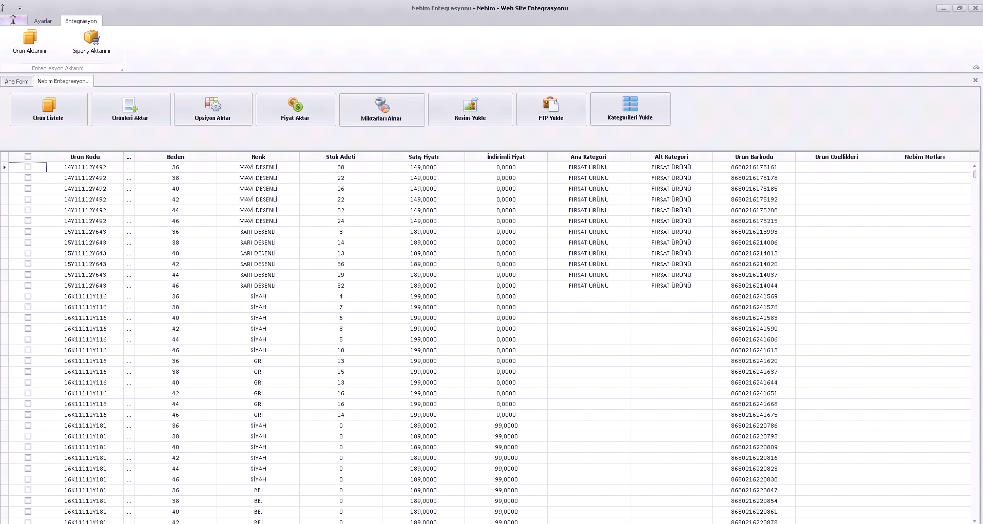 Renk ve Beden Varyantları ( Adet, Metre, Özellik )