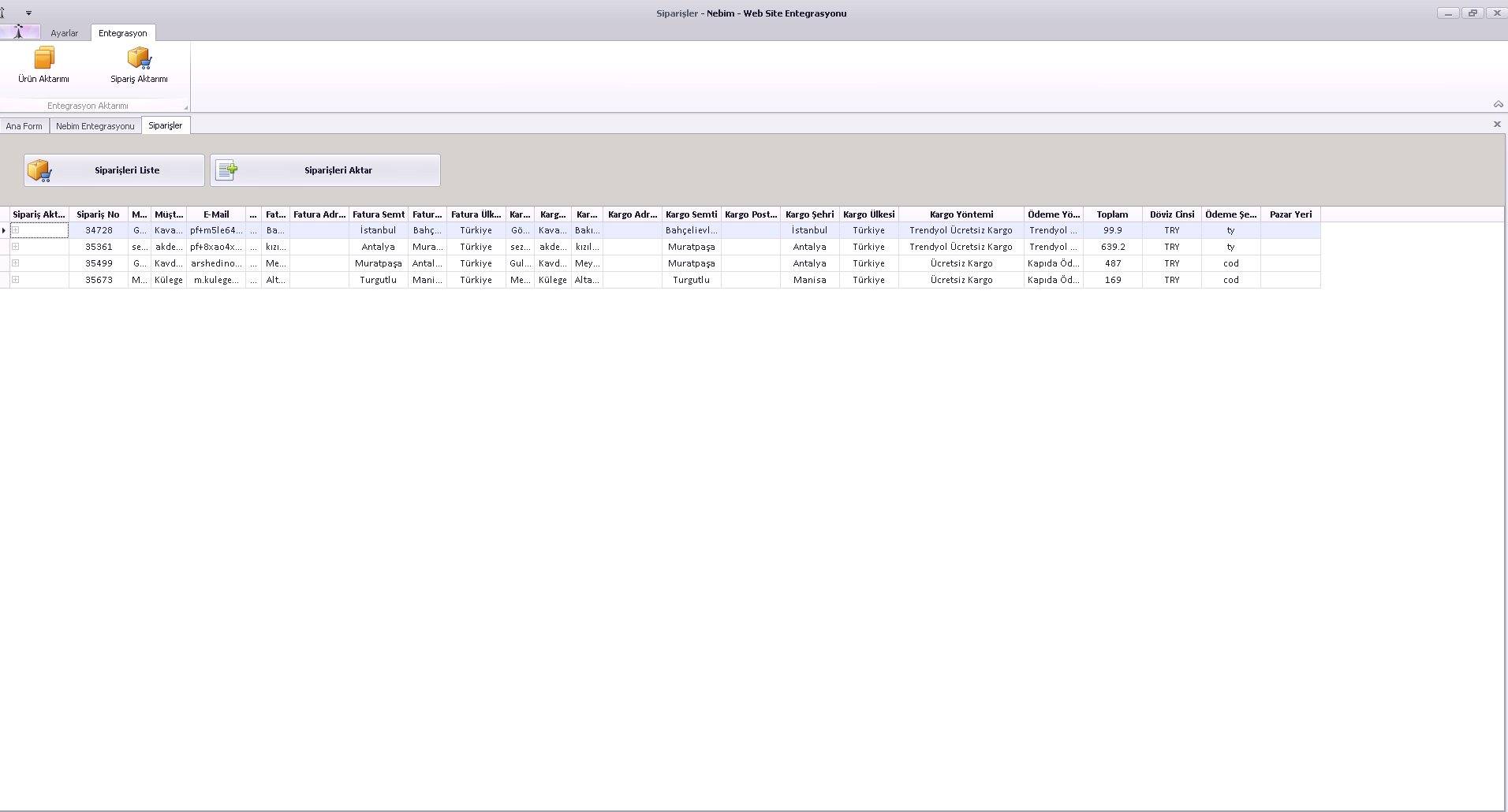* Sipariş Aktarımı